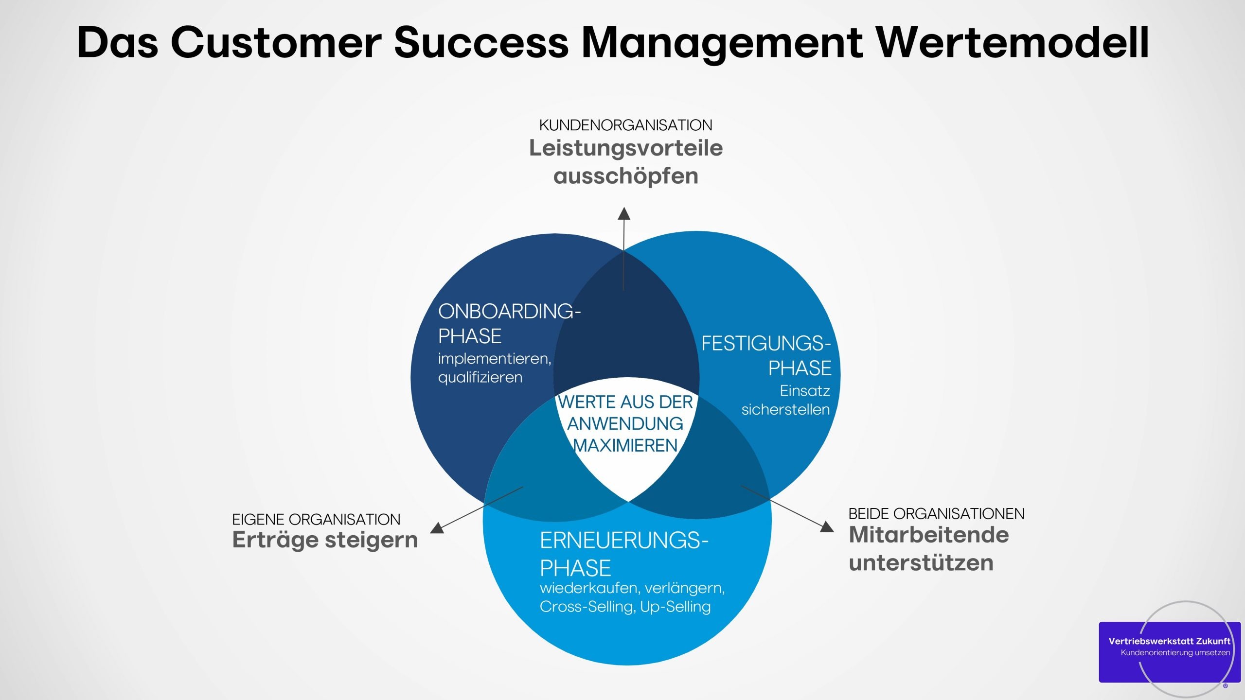 In der Vertriebswerkstatt Zukunft® erfahren Entscheider und Teams die Chancen aus diesen Herausforderungen. Wir unterstützen Organisationen dabei, zu verstehen und zu lernen, wie man diese Chancen nutzt, um den Customer Success zu maximieren. Gemeinsam bauen wir zukunftsfähige, digitale Prozesse im Tagesgeschäft, finden neue Geschäftsmodelle und nutzen innovative Lösungen für ein funktionierendes Customer Success Management.
